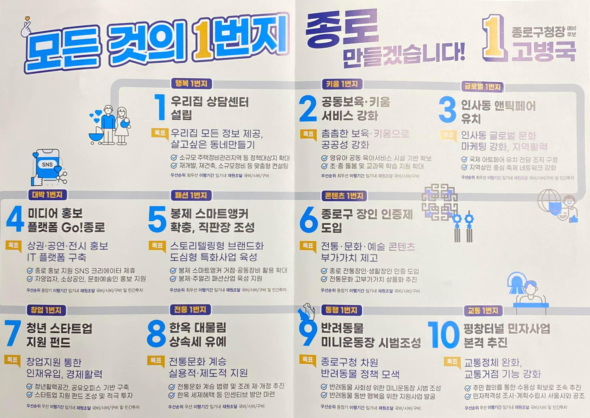 구체성 있는 공약도 보이지 않는다. 뜬구름 잡는 공약 일색에 '1번지’만 붙였다.